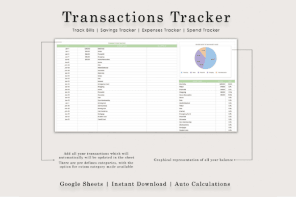 Transactions Tracker: Keep track of all your expenses and income by category, ensuring nothing slips through the cracks.